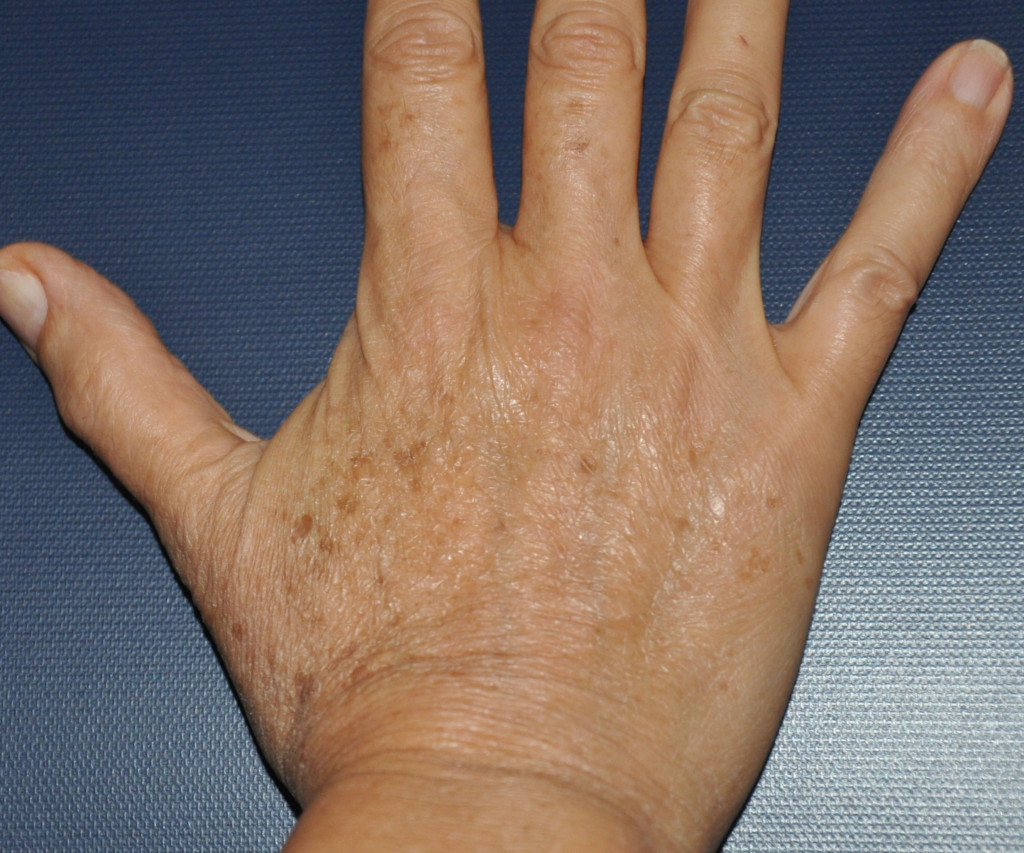 Description: Patient interested in removing age/sun spots from her hands. Photos show after 1 Fraxel Treatment.
